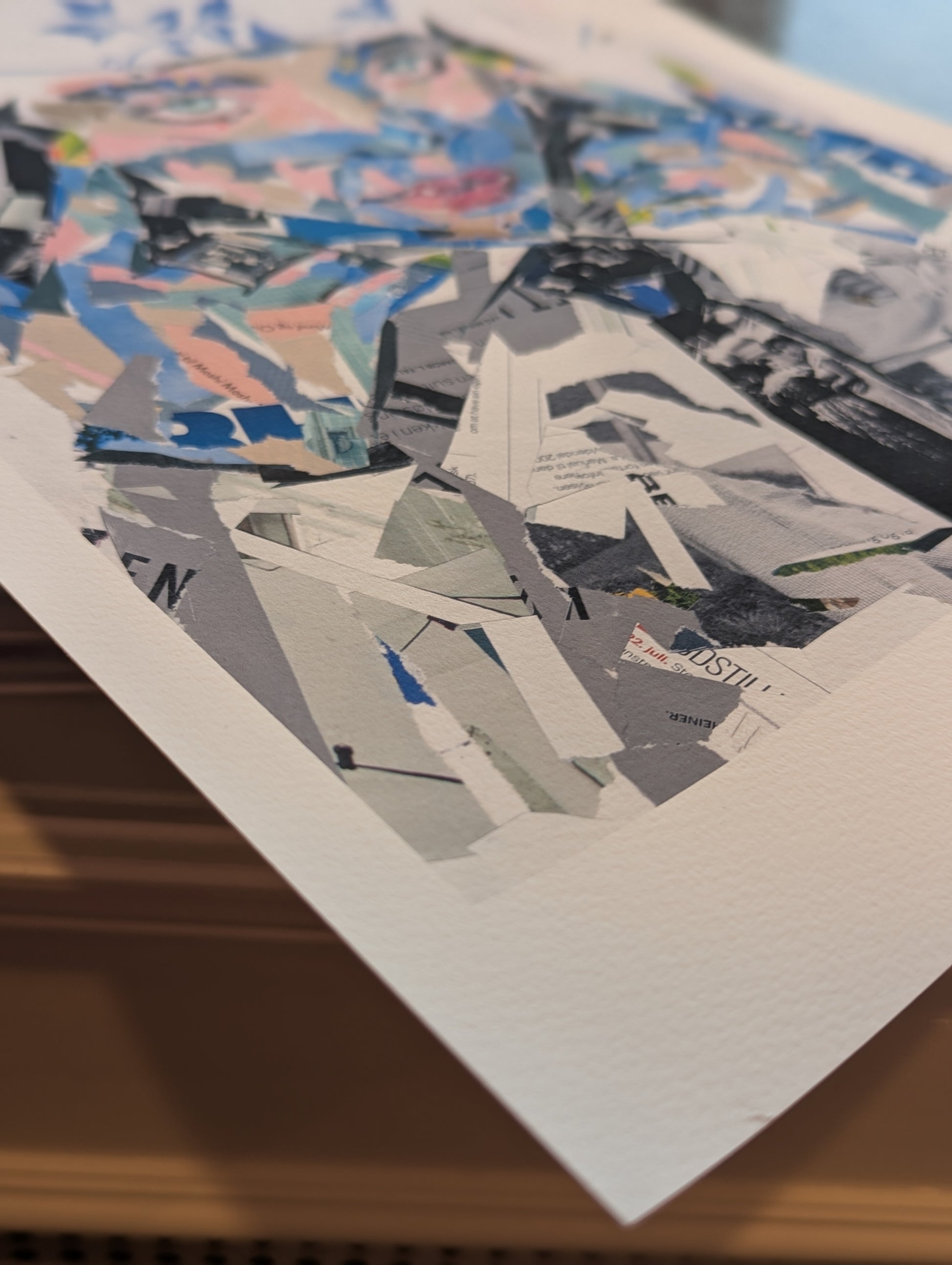 Oplev den rå skønhed i håndlavet collagekunst, nu på mat, kunstpapir (fine art) med en blød, let tekstureret overflade, der giver et eksklusivt og naturligt udtryk. Fremhæver detaljer og dybde med med meget høj farvegengivelse. En plakat der bevarer det unikke udtryk fra de originale værker.