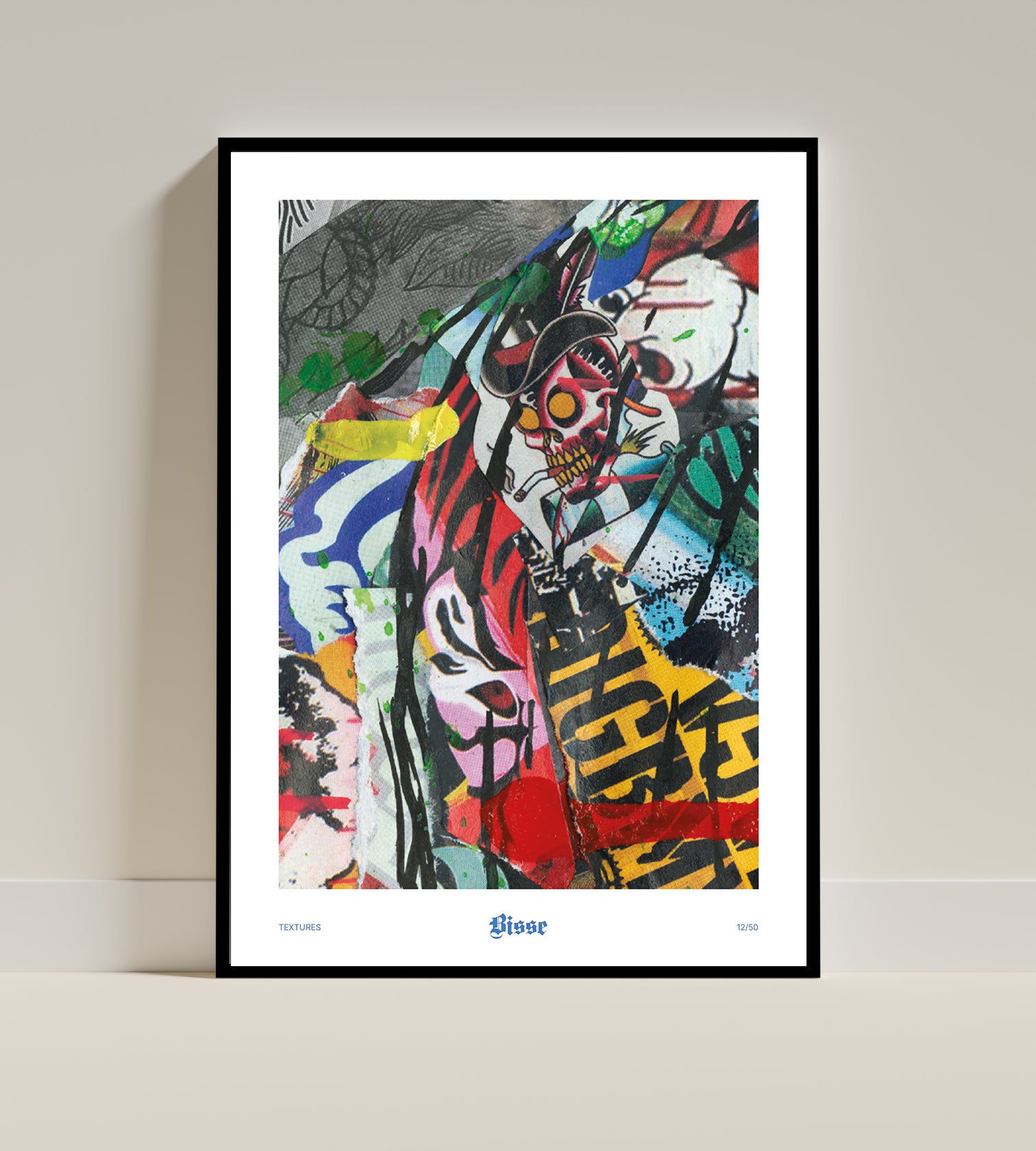 Textures er en serie, der tager udgangspunkt i Bisse’s tidligere collageværker og undersøger deres overflader, lag og detaljer i tæt udsnit.